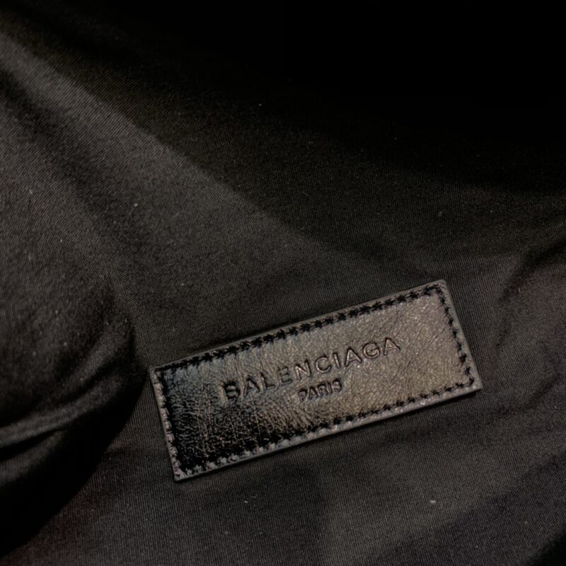 Premium calfskin with a clean, contemporary finish. The leather is selected for its durability and refined surface that aligns with Balenciaga’s modern design aesthetic. Stitching is robust and visible — contributing to the industrial aesthetic rather than hiding behind the leather. Thread is thick and evenly spaced for a deliberate, handcrafted look. Hardware features oversized studs, buckles, and zipper pulls in antique brass or silver-tone metal — the industrial-inspired details that define Balenciaga’s edgy aesthetic. See real examples of our craftsmanship in our full catalog.