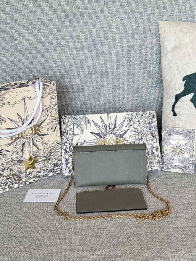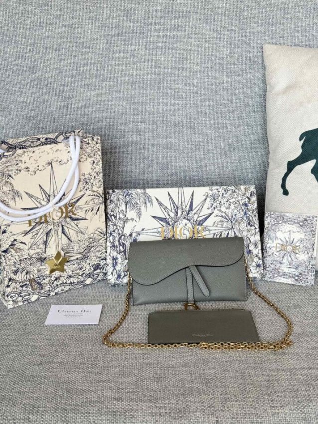 The crossbody format offers hands-free convenience with an adjustable strap that sits comfortably on the shoulder. Compact enough for essentials, stylish enough for any occasion. Gold tones add warmth and a touch of opulence. Best styled with rich neutrals — chocolate, black, cream, or deep burgundy. Dior’s design language speaks through clean lines and deliberate proportions. This piece complements structured outfits and relaxed looks with equal ease. Browse more in our Dior wallets and clutches collectsion. You may also like our Chanel replicas.