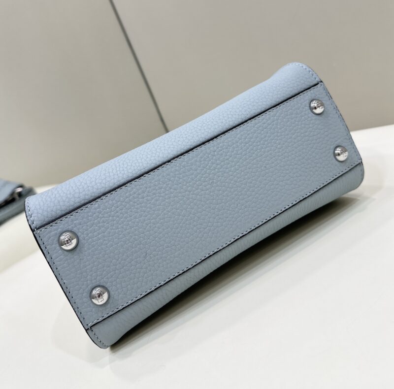 The Fendi Peekaboo Small Sky Blue is among the most sought-after designs in the Fendi lineup. This replica Fendi Peekaboo Small Sky Blue faithfully reproduces the silhouette using premium leather and carefully matched hardware — a top-quality Fendi bag dupe that stands up to close inspection. The Peekaboo features a structured shape that opens to reveal a contrasting interior through a peek-a-boo slit. A modern classic with architectural proportions.