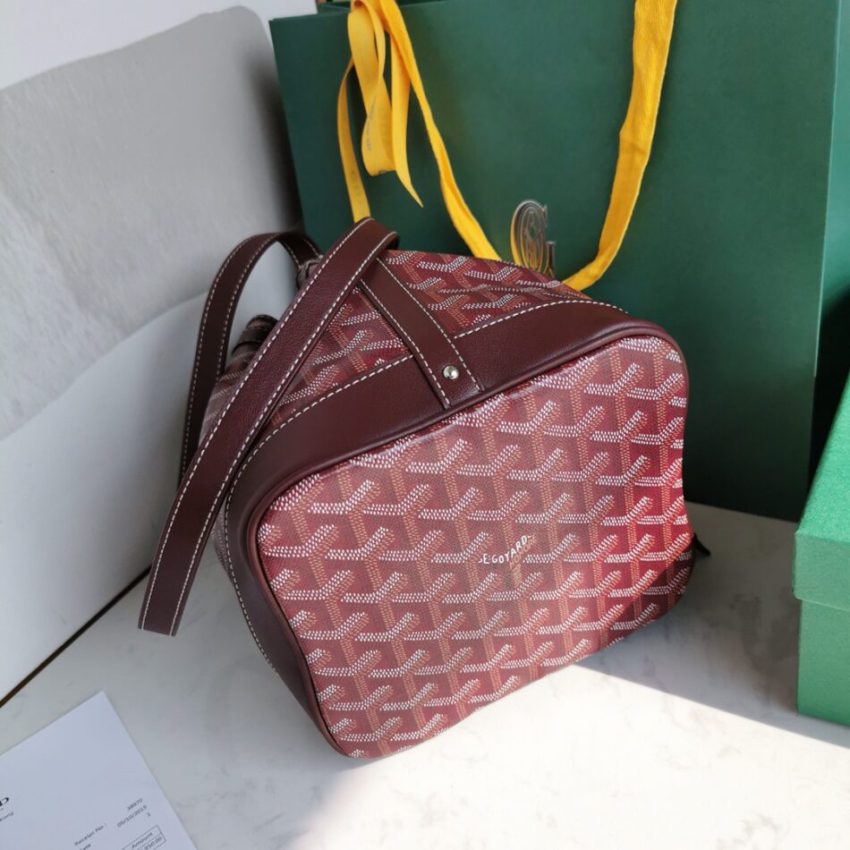 The Goyard Pettit Flot Bucket Bordeaux is among the most sought-after designs in the Goyard lineup. This replica Goyard Pettit Flot Bucket Bordeaux faithfully reproduces the silhouette using Goyardine coated canvas and carefully matched hardware — a top-quality Goyard bag dupe that stands up to close inspection.