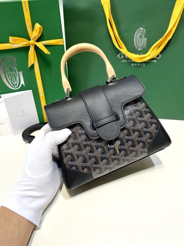 The Goyard Saigon Souple Mini Black is among the most sought-after designs in the Goyard lineup. This replica Goyard Saigon Souple Mini Black faithfully reproduces the silhouette using Goyardine coated canvas and carefully matched hardware — a top-quality Goyard bag dupe that stands up to close inspection.