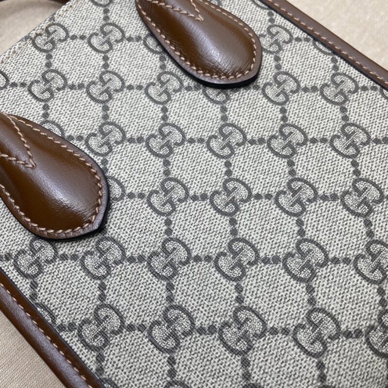A faithful recreation of the Gucci Ophidia Mini Tote Bag Beige — this premium Gucci replica is built with premium materials and precision hardware to mirror the original in every visible detail. An exceptional Gucci Ophidia alternative for discerning buyers. The Ophidia line pairs GG Supreme canvas with Gucci’s heritage green-and-red Web stripe. A nod to the house’s archival designs with a modern, structured shape.