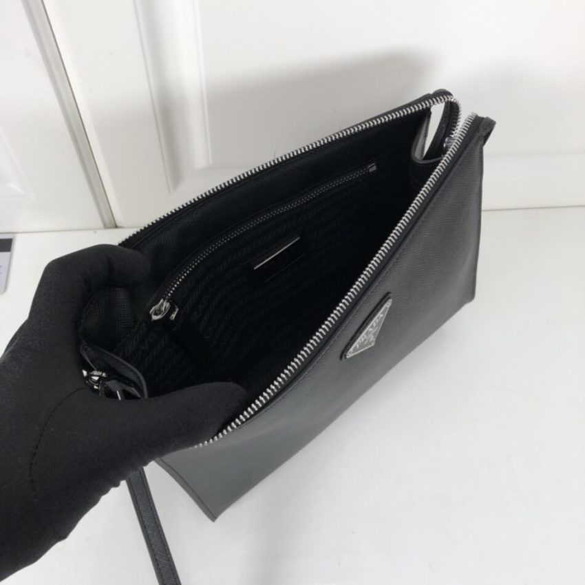 Saffiano leather features Prada’s signature cross-hatch texture — a heat-stamped grain that provides exceptional scratch resistance and a polished, professional appearance that holds up through heavy use. Clean, precise stitching with tonal thread that integrates seamlessly into the leather or fabric surface. Seam lines are straight and consistent throughout. Hardware features the triangular Prada logo2 plaque in polished metal, along with branded zipper pulls and clasps. Each element is precision-finished with clean edges. See real examples of our craftsmanship in our full catalog.